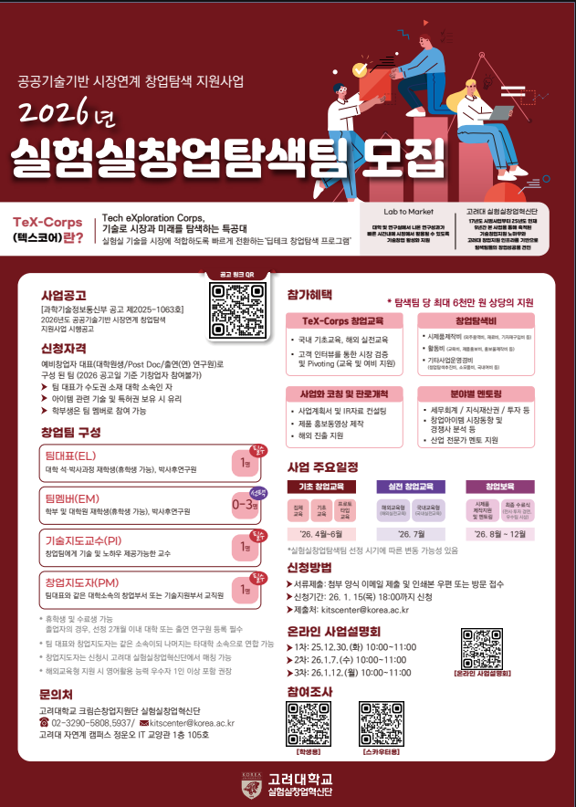| Title | 2026년 실험실창업탐색팀 모집 |