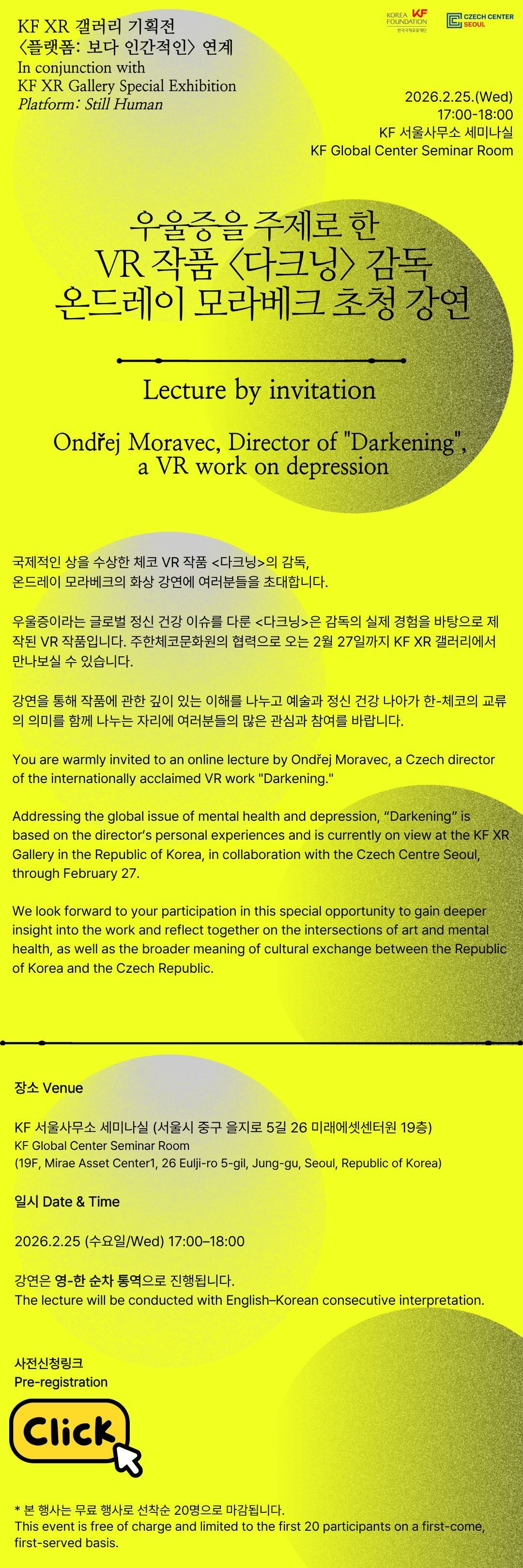 | Title | [KF] 우울증 주제 VR 작품 <다크닝> 감독 초청 강연 |