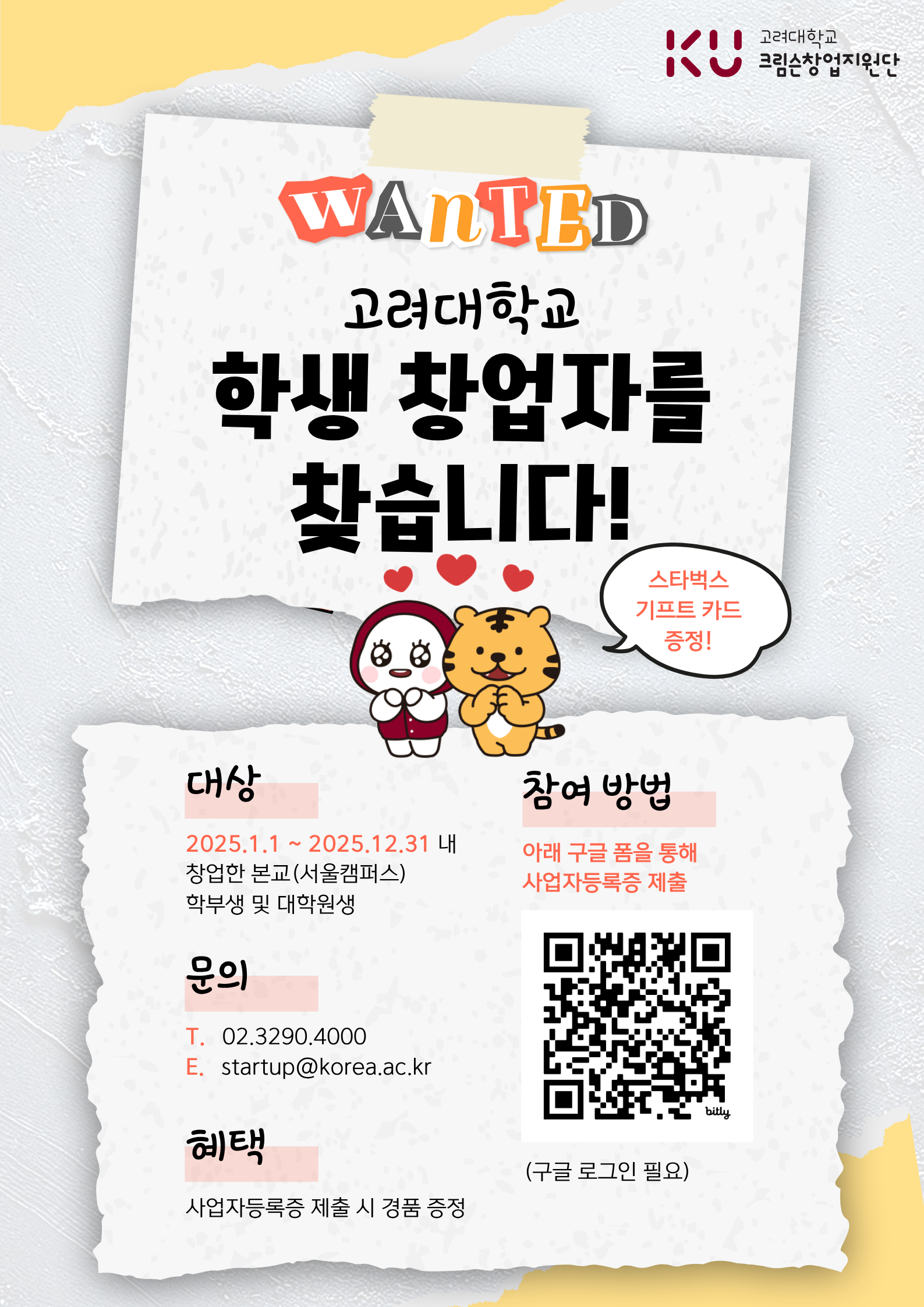 📢 고려대학교 2025년도 학생창업자를 찾습니다